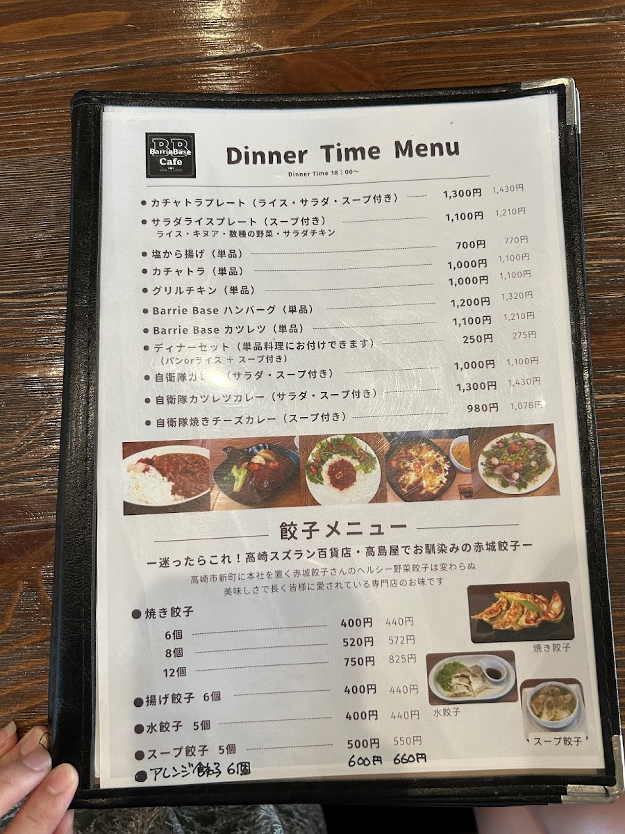 In terms of menu, Barrie Base Cafe excels at both delectable meals and delightful desserts. A particular highlight is their signature self-defense themed menu, which has garnered attention and praise from patrons. For those who appreciate hearty and comforting food, the カツカレー (Katsu Curry) is a top recommendation. Reviewers speak highly of the generous, succulent pieces of meat and perfectly cooked curry that strike a delightful balance of flavors. One guest praised the tender meat and the delicious curry, noting its delightful, soft texture. You might also want to explore the 餃子 (Gyoza) selection, touted as a must-try by several visitors for its variety and flavors. Each bite promises to be a tasty adventure!